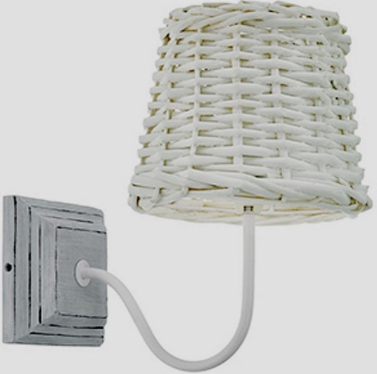 Na drevenom podstavci, natretom bielom, je strop štylizovaný ako ratanový kôš s minionovou nábojnicou. Vhodné pre žiarovky. Šarm dodávajú škrabance vyrobené technikou craquelure.