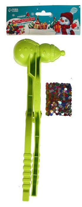 Plastové zariadenie na vytváranie dvojitých snehových gúľ má dĺžku 38 cm. Priemer výsledných snehových gúľ dosahuje 8 cm. Svetlá hračka poteší každé dieťa. Cena je od 426 rubľov.