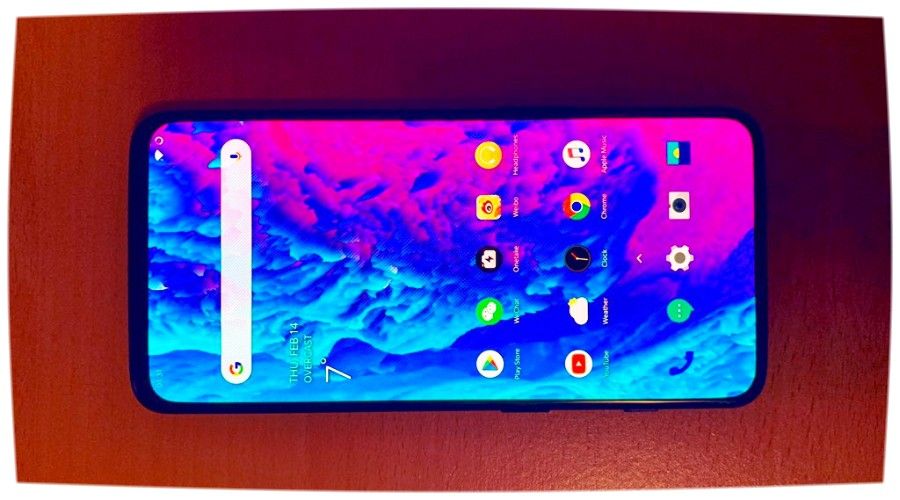 Maximálna ostrosť displeja je 650 cd/m2. V tomto ohľade pri prezeraní obsahu na slnku nebudú žiadne ťažkosti. Kontrast je skvelý. Na zadnej strane OnePlus 7 je nastavenie troch fotoaparátov, LED blesk a snímač odtlačkov prstov.
