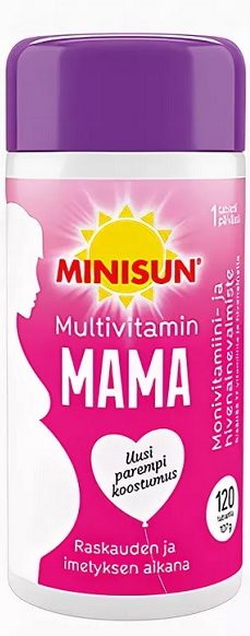 Finski vitamini Minisun Multivitamin Mama so všeč številnim doječim materam. Vitaminsko-mineralni kompleks je primeren za načrtovanje nosečnosti, nosečnost in dojenje. Posebnost kompleksa je, da je obogaten s folno kislino in ne vsebuje retinola. Toda tiamin je prisoten v odmerku 5 mg. Oblika sproščanja - tablete, v pakiranju po 90 ali 120 kosov. Priporočljivo je jemati 1 tableto dnevno. Po mnenju kupcev se dobro počutje opazno izboljša in prijetne zunanje spremembe so vidne, ko lasje prenehajo izpadati in se stanje kože izboljša. Najpogosteje jih naročajo preko spletne trgovine.