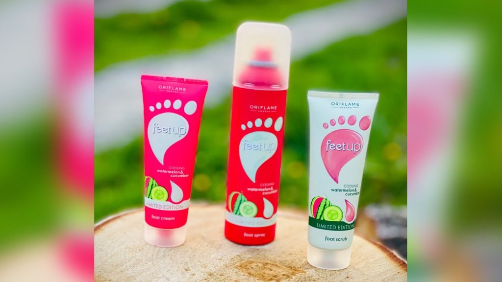 Oriflame Feet Up hladilni sprej za noge z lubenico in kumaro.