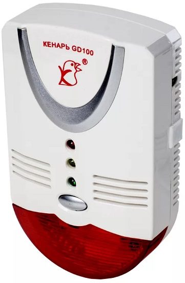 En annan högkvalitativ rysktillverkad enhet heter Kenar GD 100-CN. Denna enhet är utformad för automatisk kontinuerlig övervakning av ökningen av gaskoncentrationen i rummet. När tröskelvärdena överskrids ljuder ett larm. Visar överskottet av kolmonoxid och metan, används i rum där gasbrännarutrustning är installerad. Förutom ljudlarmet aktiveras en ljusindikering. Operationen tillhandahåller ett manuellt testläge. För att göra detta gjordes en speciell "TEST" -knapp på enheten, genom att klicka på den börjar en simulering av en ökning av gaskoncentrationen. Vid eventuella fel, tänds den gula lysdioden på signalanordningen och summern ljuder (en halv sekund pip, 3 sekunders paus). Mått: 135*82*41 mm.