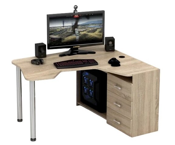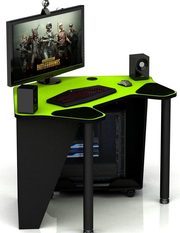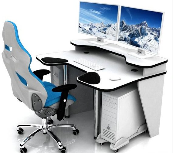 Utformningen av spelbord gör att du bekvämt kan placera en eller flera bildskärmar, en PC-systemenhet. Det finns tre huvudtyper: