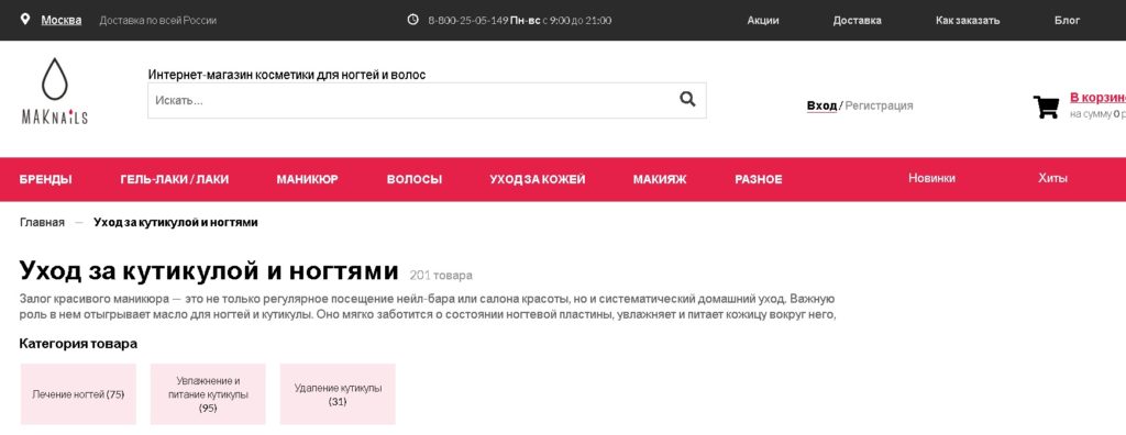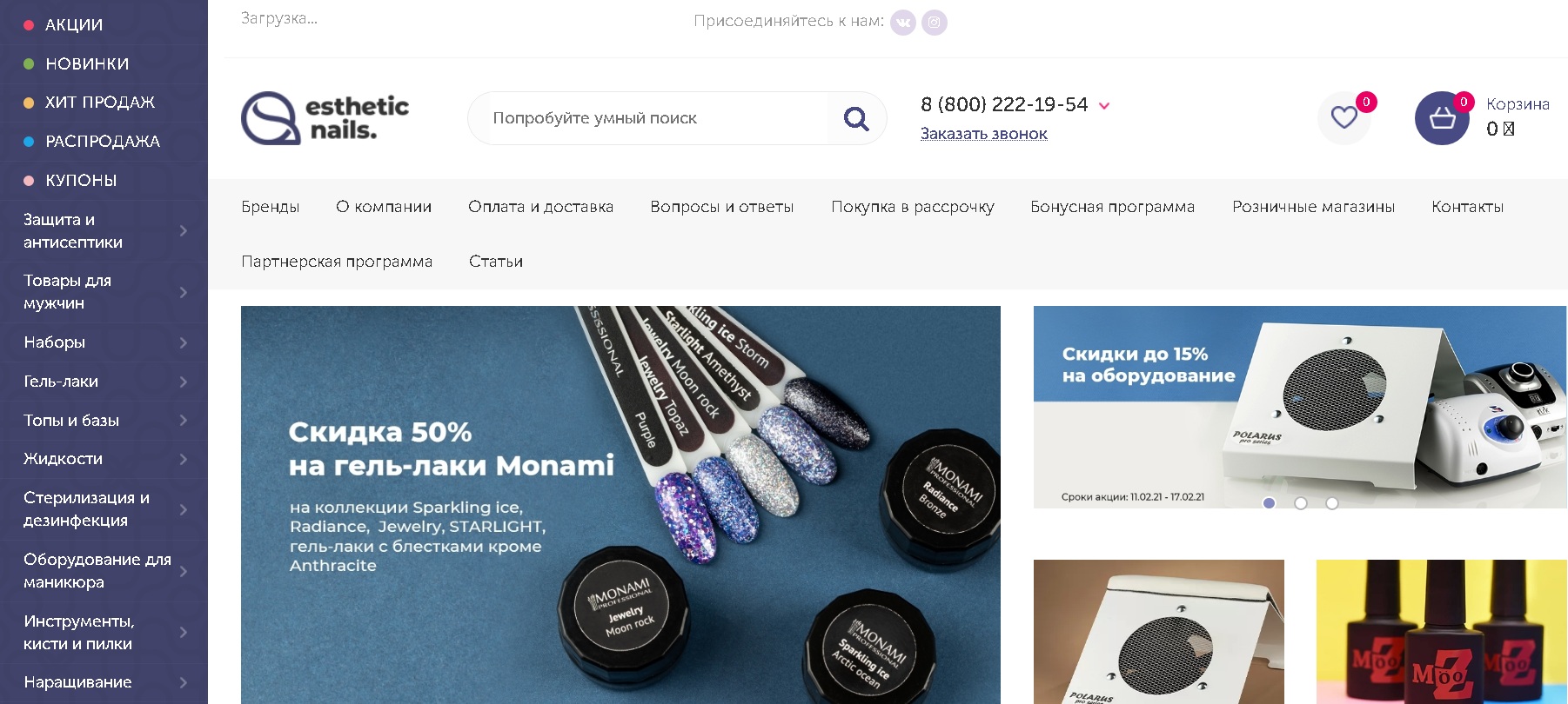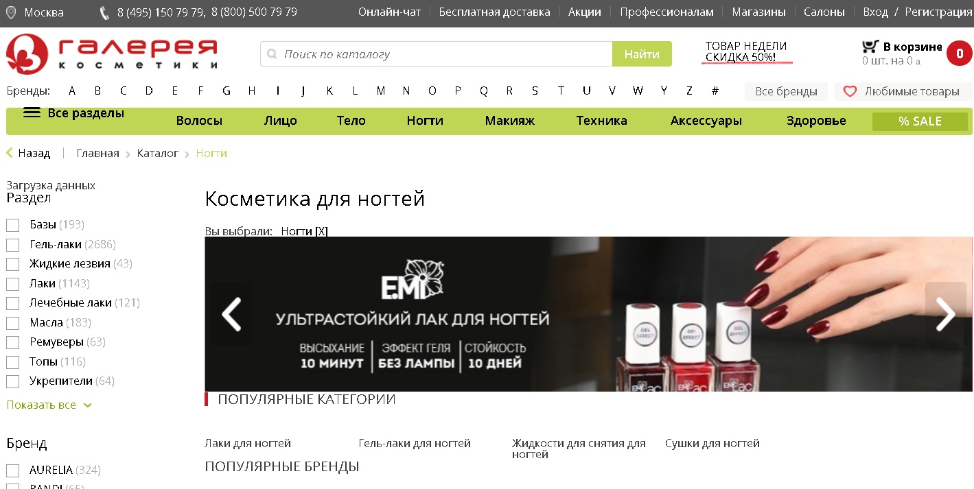 En bekväm och ekonomisk online manikyrmarknad representeras av 17 varumärken.