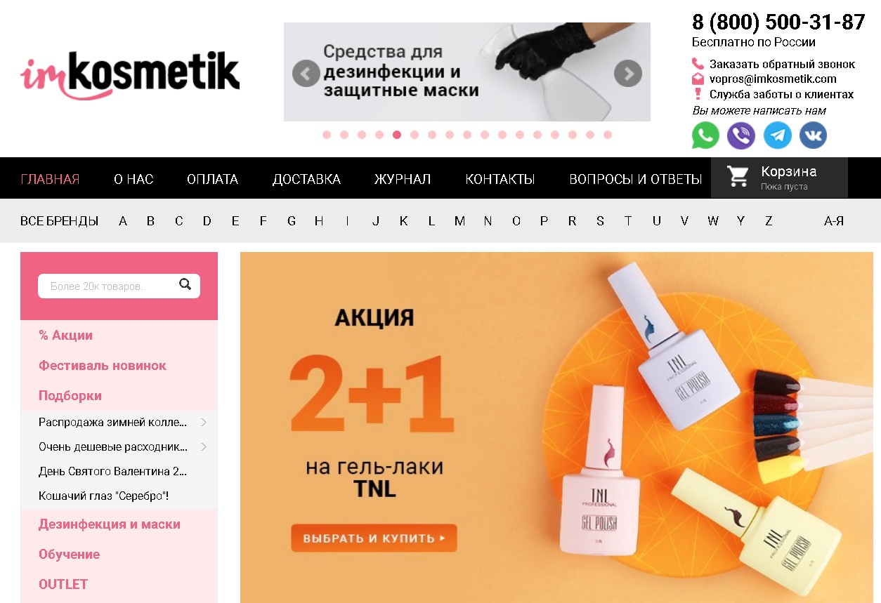 | Imkosmetiskt | Ryska posten, kurir | ≥350 | kontanter, qiwi. Yandex, bankkort | - |