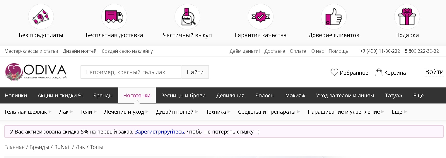 | Estetiska naglar | Ryska posten, kurir, BoxBerry | ≥250 | kontanter, bankkort | 600 |