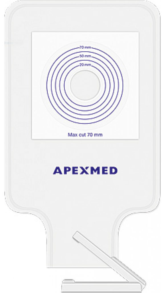 En ogenomskinlig stomipåse som passar stomistorlekar från 20 till 60 cc. Tanken är gjord av polymerfilm. Det är bra eftersom det är lätt att limma på patientens hud och det är inte svårt att kontrollera innehållet i påsen.