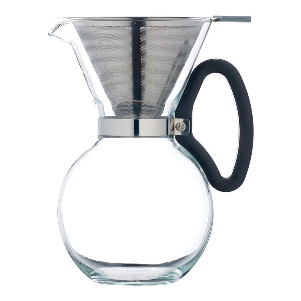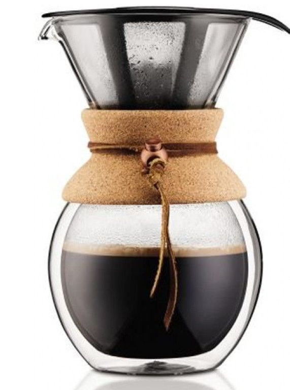 Tillverkaren av Pour Over-kolven är det schweiziska företaget Bodum. Snygg och ovanlig kaffekanna från detta märke, lätt att använda och den ger en läcker och doftande dryck. Borosilikatglas används för tillverkning av kolven och stål för filtret. Traditionella pappersfilterpåsar fungerar inte här.Produktens botten är förtjockad på grund av vilket kaffekannan har ett stabilt läge och håller vätskans temperatur längre. Pour Over med ett återanvändbart filter är lämpligt för att tillaga 8 koppar dryck på bara en minut.
