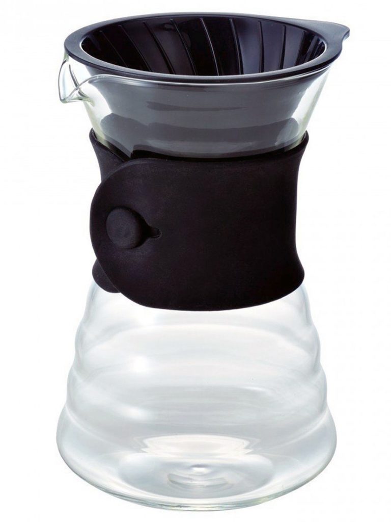 Det japanska företaget är engagerat i produktionen av modellen Hario V60 VDD-02B, en kaffebryggare för att göra kaffe för hand. Behållaren är gjord av värmebeständigt glas, utrustad med ett elastiskt silikonbälte, tack vare vilket disken inte glider ur dina händer. Att ta hand om disken är ganska enkelt, ta bara bort det använda filtret och skölj behållaren.