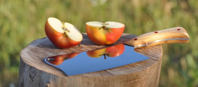 Bladet i högkolstål är säkert anslutet med tre starka nitar till ett trähandtag. Perfekt för skärning och skärning. Bekväm för slipning och rivning. Tjockleken på rumpan på 4 mm är idealisk för att slå. Produkten kommer att hålla länge med rätt skötsel. Fabriksslipning blir inte tråkig under lång tid. I framtiden, för att behålla skärpan på bladet, räcker det med att använda vanlig muskotnöt. Produkten motiverar till fullo sin kostnad, vilket framgår av många kundrecensioner. Också noterat är bekvämligheten med ett halkfritt trähandtag, behaglig tyngd, tillräcklig för stötrörelser under skärning, vacker förpackning.Den senare omständigheten gör att du kan köpa detta verktyg som en gåva.