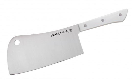 Chopper-yxa för att skära brosk och ben är gjord av högteknologiskt stål, resistent mot korrosion. Dubbelsidig skärpning och ett bekvämt handtag gör arbetet med verktyget behagligt och enkelt. Den passar bekvämt under vilken hand som helst, väger inte för mycket, så den passar bra för kvinnor. Det vita ABS-plasthandtaget är stadigt fastsatt på bladet med nitar.