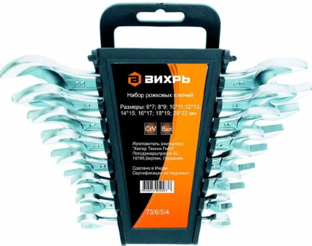Denna kopia erbjuder 8 typer av verktyg i olika format, enligt de vanligaste standarderna för hushållsfästen. Detta kit kommer att vara till nytta för dem som letar efter verktyg för arbete runt huset, personbil, möbelreparation och anslutningar som kräver sexkantsbultar och muttrar. För transport och korrekt underhåll av utrustningen har tillverkaren tillhandahållit ett fodral av hållbar plast. Setet innehåller 8 öppna verktyg i kromvanadinlegering med en polerad kromfinish. Tillgänglig för försäljning till ett genomsnittligt pris av 420 rubel.