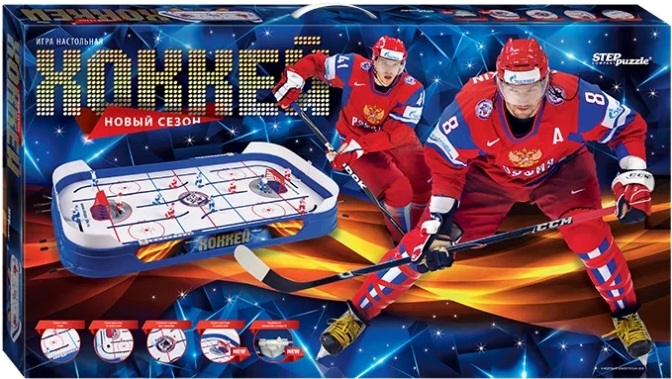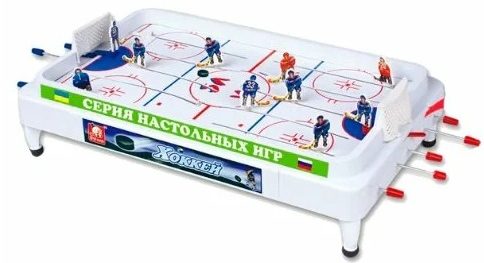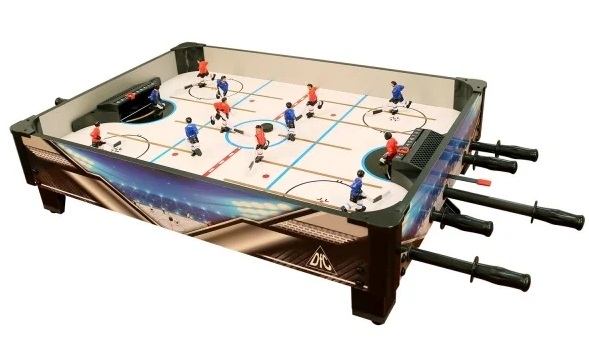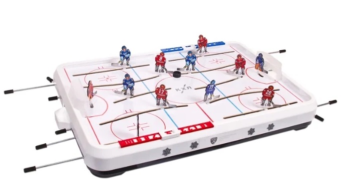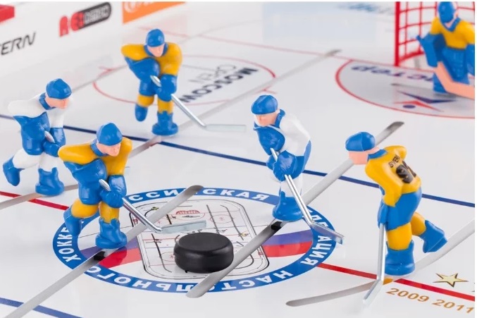 Denna spelmodell kan framkalla trevliga minnen och nostalgi hos den äldre generationen, eftersom den är en förbättrad analog till den sovjetiska bordshockeyn som producerades vid den tiden. Designad för två deltagare över fem år. Fältet är tillverkat av plast och metall. Setet innehåller 12 huvudfigurer och 2 reservdelar, de åtföljs av klistermärken för att identifiera lag. Du kan sätta mål med hjälp av en mekanisk räknare. Hanteringen utförs med hjälp av en roterande mekanism.