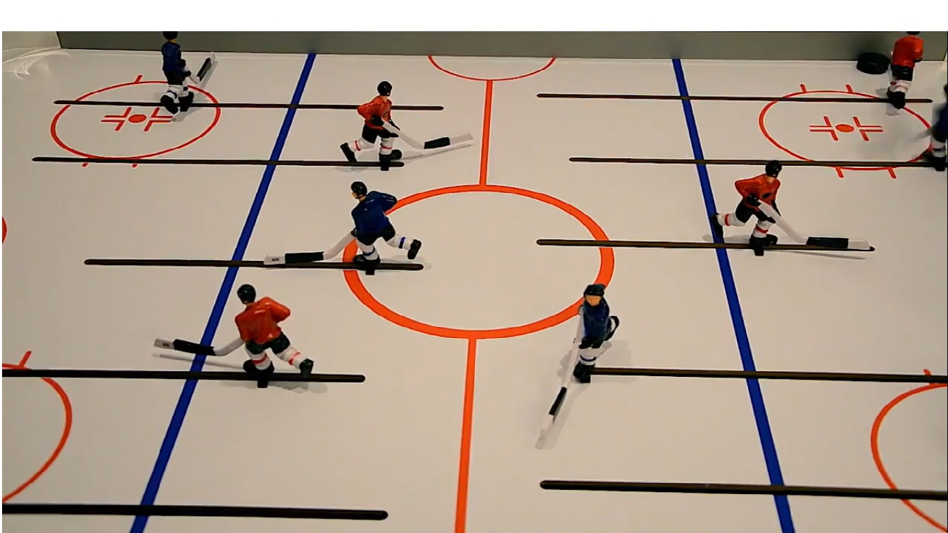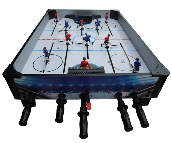 Det klassiska spelet är en hockeyplan med spelare omgivna av brädor, satsen innehåller mål, puckar, resultattavlor. Fältet imiterar oftast en riktig stadion med nödvändiga markeringar. Under spelytan finns en mekanism som gör det möjligt att kontrollera hockeyspelare. Figurernas rörelse startas av deltagarna med hjälp av roterande handtag. Matchens längd är 5 minuter. Målet är att göra så många mål som möjligt i motståndarens mål under en viss tid och vinna.