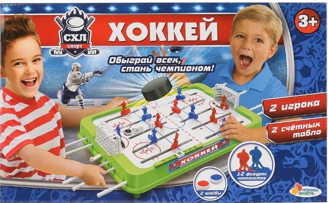 Minsta tillåtna ålder är tre år. Denna bordshockey är den största som produceras i Ryssland. Har praktiska dimensioner för transport och förvaring. Till skillnad från inhemska motsvarigheter är siffrorna i denna version omfattande för hockeyspelare. Setet innehåller 12 figurer, 2 grindar, 2 brickor, 1 räknestav. Materialet som kroppen är gjord av är slitstark plast, spakarna är gjorda av metall.Möjligheten att spela bakom grinden ger smidighet och dynamik till processen. Markeringarna på spelplanen är gjorda med hög precision.