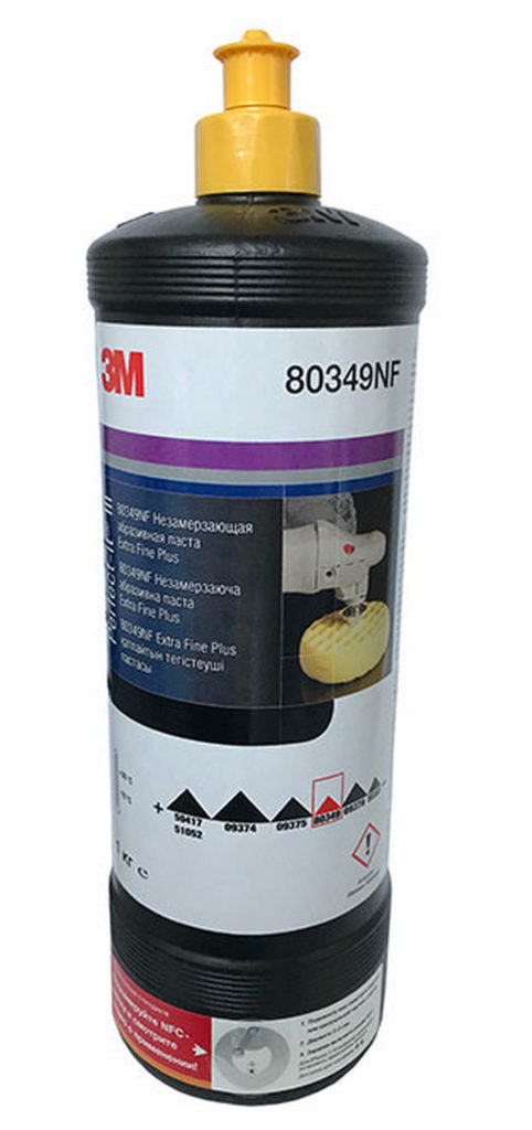 Den klarar bra av allvarliga repor, den kan till och med ta bort ett litet lager av torkad färg. Det kan användas i det första steget av polering, varefter det krävs att resultatet fixeras med vaxade produkter. Det tar inte mer än 40 minuter att bearbeta alla lampor i en bil, med rätt skicklighet.