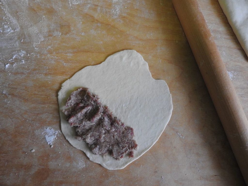 Bild - matlagning, cheburek, det sista steget, innan, stekning