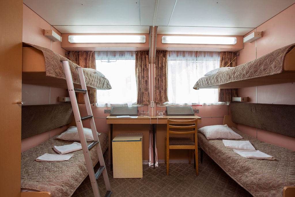 Förutom bekväma hytter med tre komfortnivåer har fartyget ett solarium, en restaurang, en frisör, en bar, en första hjälpen-post, en massagesalong och ett gym. Du kan också njuta av att titta på dina favorit-TV-program eller filmer via satellit-TV.