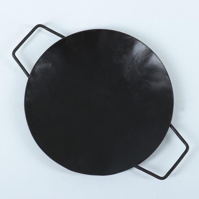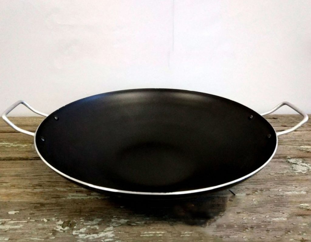 Metallprodukten är målad svart, kommer att dekorera alla bord. Pannans kanter är vågiga, handtagen är försedda så att produkten enkelt kan tas bort från elden. Metallen är hållbar, så saj kommer att hålla länge utan att tappa utseendet. Skålens diameter är 40 cm, denna indikator räcker för att laga en maträtt för alla familjemedlemmar samtidigt.