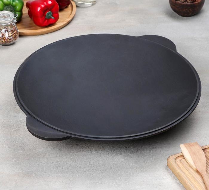 Djupet på pannan är endast 1 cm, diametern är 40 cm Produkten är gjord av gjutjärn, så den håller länge oavsett hur ofta den används. Den övre delen av produkten har en porös konsistens, på grund av vilken ett skyddande lager bildas som förhindrar att maten fastnar. Lätt att rengöra utan att använda slipande rengöringsmedel. Modellens vikt är 5,6 kg.