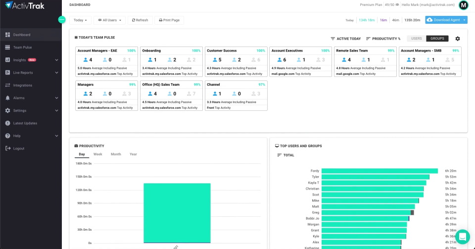 En applikation för att spåra arbetstiden för personal på kontoret eller på distans med onlinevisning av deras aktiviteter, bestämma platsen och aktiviteten med hjälp av GPS, samt spåra produktivitet. Installerad på en dator eller mobil enhet.Som ett resultat har ledningen förmågan att utvärdera underordnades aktiviteter och den anställde att observera tiden som spenderas på uppgiften. Dessutom får användarna en instrumentpanel för att hålla reda på aktuella uppgifter, visa rapporter och övervaka kollegornas schema. En objektiv bedömning av arbetet erhålls baserat på analys av visning av skärmdumpar och övervakning av den tid som går åt när man arbetar med sajter och applikationer.