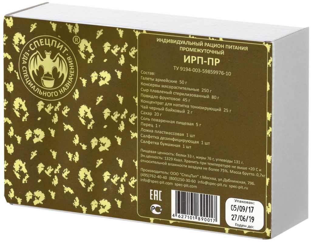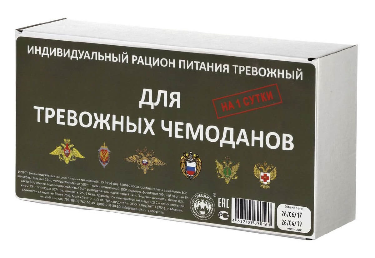 Det finns också en daglig individuell diet (IRP-P), som används till exempel i övningar, IRP-B - ett sådant kit innehåller fler kalorier och är mer näringsrikt, eftersom det används under militära operationer.