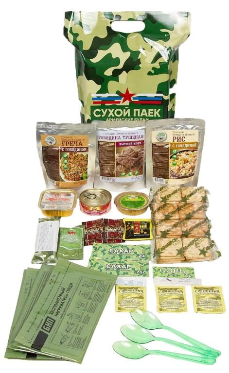 Vid genomförande av militära operationer eller militär utbildning finns inga förutsättningar för fullvärdig matlagning och varma rätter. I sådana situationer räddar torra ransoner militären. Matset hjälper till att återställa den förbrukade energin och få styrka på kort tid.