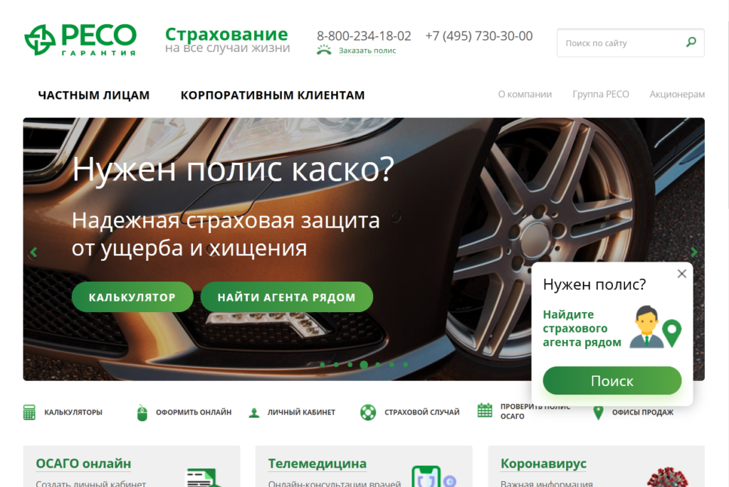 På den officiella webbplatsen kan du beräkna den preliminära kostnaden, utfärda en elektronisk policy eller utöka en befintlig.
