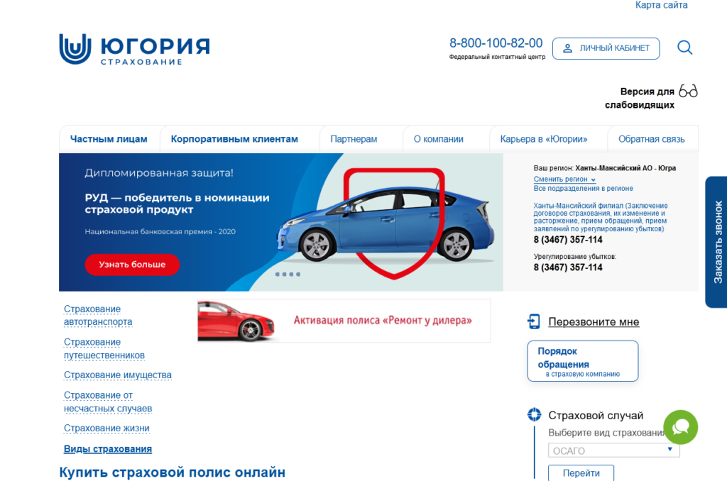 Den prioriterade formen för skadeersättning är återställande reparation - företaget skickar bilen till partnerservicestationer.
