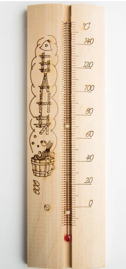 Termometern kommer perfekt att komplettera interiören i ett klassiskt ryskt bad med hyllor gjorda av solid karelsk björk. Produkten är mycket hållbar. Nackdelen med enheten är det höga felet i avläsningarna på t ° C.
