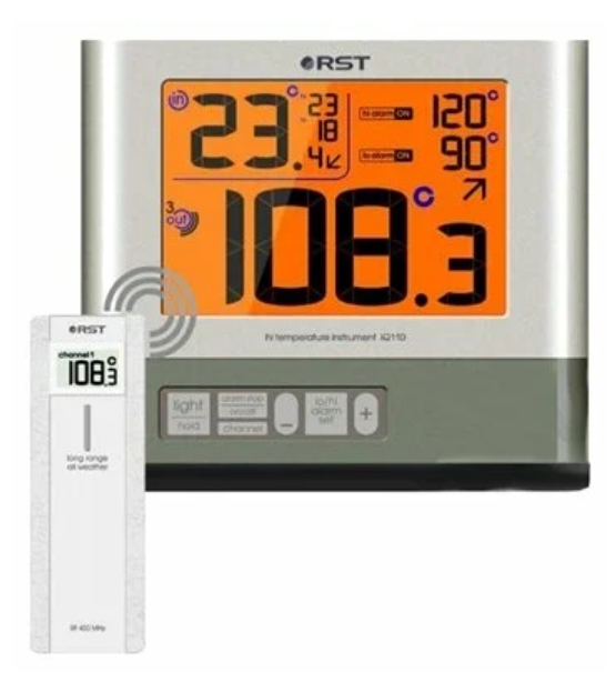 1:a plats - för en enhet med utökad funktionalitet används den i rum med höga temperaturer (bad, bastu). Enheten är utrustad med en extern trådlös sensor, som är sedvanlig för sådana enheter, och mäter temperaturen.Fördelen med RST 77110 är möjligheten att avge en ljudsignal när extrema värden uppnås inomhus, utomhus, denna fördel hjälper till att kontrollera mikroklimatet i ångrummet. RST 77110 har en mängd olika applikationer: