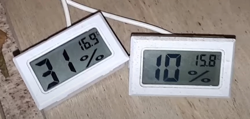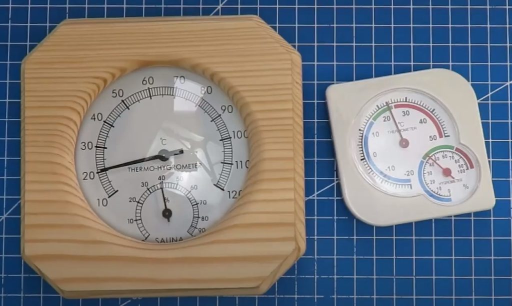 Ett annat användbart föremål är en hygrometer. Den indikerar luftfuktigheten, som vanligtvis varierar från 10 % till 35 %, beroende på mängden vatten som används i ånggeneratorn.