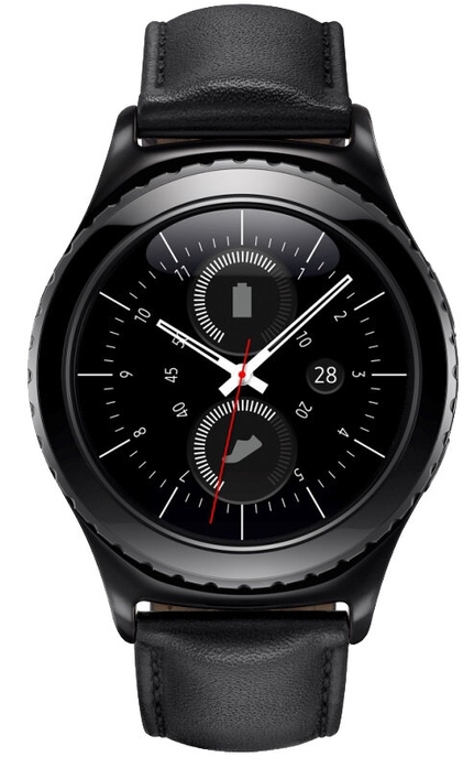 Gear S3 classic tar förstaplatsen i rankingen av smarta klockor. Fodralet har en färgskärm, som är i konstant aktivt arbete. På ramen appliceras speciella risker med laser, när den vrids utförs vissa funktioner. Ägaren kan, om så önskas, anpassa urtavlans design på egen hand och välja det mest optimala av de femton alternativen.