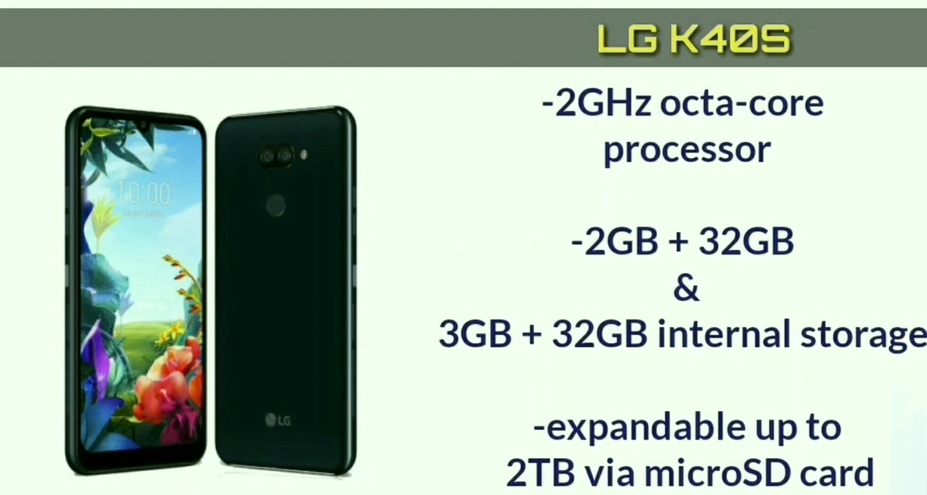 LGs huvuduppgift är att tillfredsställa kundernas behov, så nya produkter kommer med förbättrade komponenter. Massinträdet av LG K40S-telefoner till marknaderna i Europa, Latinamerika och Asien förväntas i slutet av september 2019, de kommer att konkurrera med smartphones i en liknande prisklass.