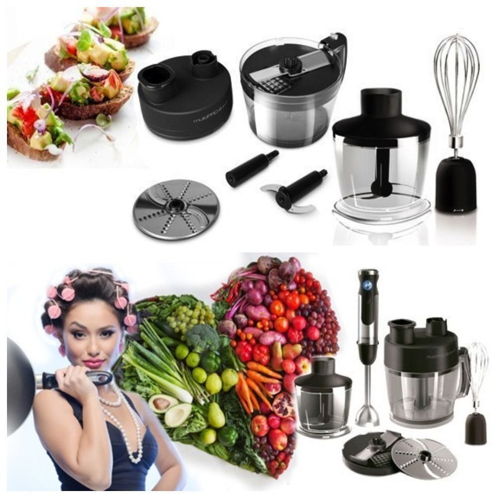 Ang mahusay na modelo na pinagsasama ang limang mga function, salamat sa mga nozzle. Ang isang malawak na lalagyan (1 l) ay nagbibigay-daan sa iyo upang maghanda ng mga cream soups, masustansyang inumin, mga dessert para sa buong pamilya. Tumutulong sa paghahanda ng pagkain ng sanggol, pagmamasa ng batter, paghahanda ng mga sarsa. Ang aparato ay gumiling, naghahalo, gumiling, humahagupit ng anumang sangkap.