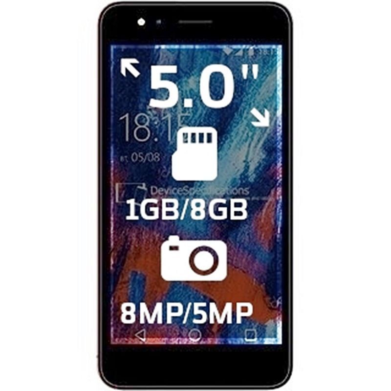 Touch screen: 5 pulgada dayagonal, IPS - matrix, resolution 480 × 854, 196 PPi, glass 2.5D. Ang uri ng IPS display ay ginagamit sa badyet at mamahaling mga smartphone. Naiiba sa sharpness, brightness ng imahe. Ang imahe ay hindi nasira sa araw.