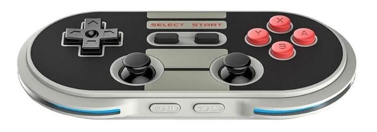 Ang hugis-itlog na wireless controller ay angkop para sa maraming device (kabilang ang personal na computer) na sumusuporta sa iOS, Mac, Android system. Nilagyan ito ng sarili nitong baterya, may dalawang mini-joystick, 4 na mode at isang D-pad. Ang kaso ay ginawa sa istilong retro na may backlight.