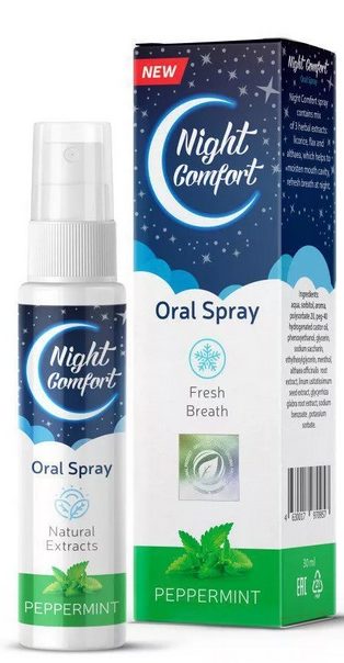 Isang napakagandang spray na nagbibigay ng malusog na pagtulog, Night Comfort. Ang mga pangunahing bahagi nito ay licorice, marshmallow root at flax seeds. Ang mga sangkap na ito ay mahusay na hinihigop ng katawan at gumagawa ng isang kapaki-pakinabang na epekto. Ang tool ay malumanay na moisturizes ang oral mucosa at nasopharynx, pinapawi ang namamagang lalamunan sa panahon ng sipon, sinisira ang pathogenic bacteria at tumutulong upang maiwasan ang mga nagpapaalab na proseso. Inirereseta ng mga doktor ang Night Comfort hindi lamang para sa hilik, kundi pati na rin para sa mga sakit sa paghinga.Ang spray ay epektibong nakakaapekto sa parehong mga kalalakihan at kababaihan, bilang karagdagan, ang tagagawa ay nag-aangkin na ang produkto nito ay ligtas, samakatuwid ito ay pinapayagan na kunin ng mga buntis at nagpapasusong kababaihan.
