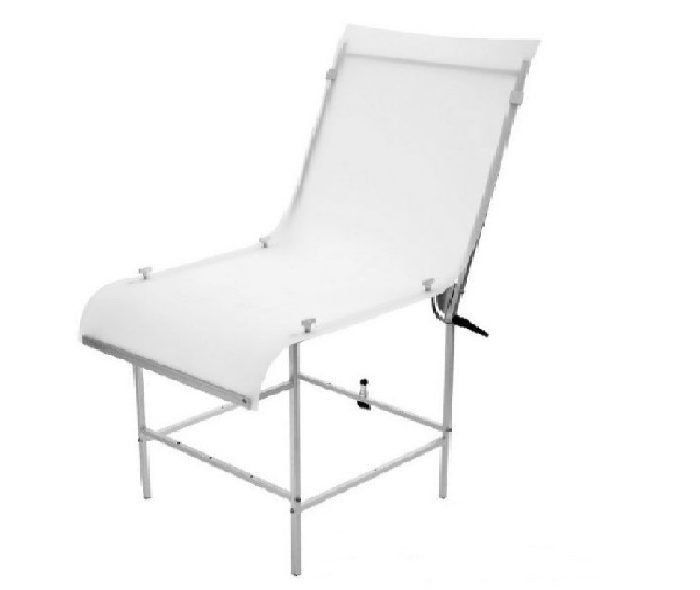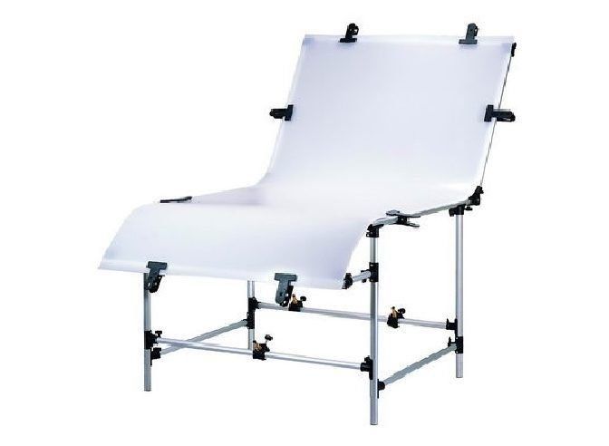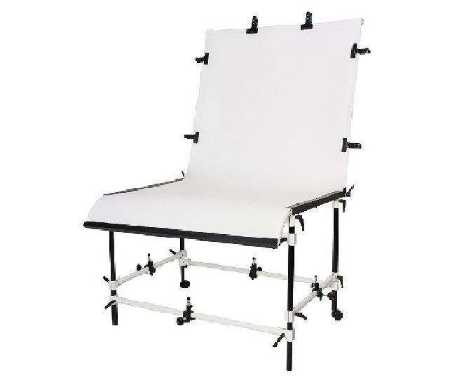 Ang talahanayan ay binubuo ng isang collapsible metal base at isang siksik na plastic na background, na madaling mapalitan ng: tela, papel o pelus. Ginagamit para sa mas kumplikado at propesyonal na litrato ng produkto.Ang malaking sukat ng canvas at ang pagiging maaasahan ng disenyo ay nagpapahintulot sa iyo na mag-shoot sa halip ng malalaking bagay o ang kanilang komposisyon. Kadalasan ang mga ito ay ibinebenta na kumpleto sa mga espesyal na LED illuminator. Samakatuwid, ito ay perpekto hindi lamang para sa walang anino na pagbaril, kundi pati na rin para sa epektibong light shooting.
