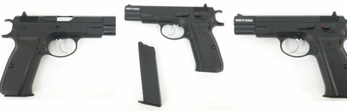 Bansang pinagmulan ng Taiwan (KJW). Ang prototype ng labanan ay ang Czech na anim na kalibre CZ 75. Sa pamamagitan ng uri ng kapangyarihan - isang gas pistol, tumatakbo sa propane-butane. Magazine na may kapasidad na 24 plastic ball bullet caliber 6 mm. Ang katawan ng pistol at ang slide ay gawa sa matibay na de-kalidad na metal, na magsisiguro ng mahabang buhay ng serbisyo kahit na sa pinaka-aktibong serye ng mga laro (higit sa isang season pass). Semi-awtomatikong pagpapaputok mode na may bilis ng pagbaril na hanggang 100 metro bawat segundo.