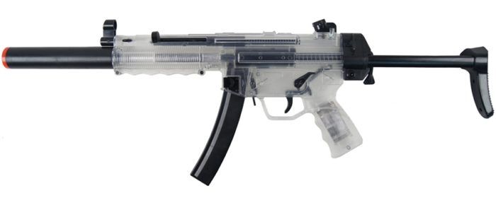 Pinapatakbo ng NiMH 8.4V na baterya (1100mAh mini type). Uri ng store bunker na may kapasidad na 500 units. Mahusay na bilis ng pagbaril hanggang sa 130 metro bawat segundo.Ang drive ay may dalawang mga mode ng pagpapaputok: awtomatiko at semi-awtomatikong, na madaling lumipat sa pagitan ng bawat isa.