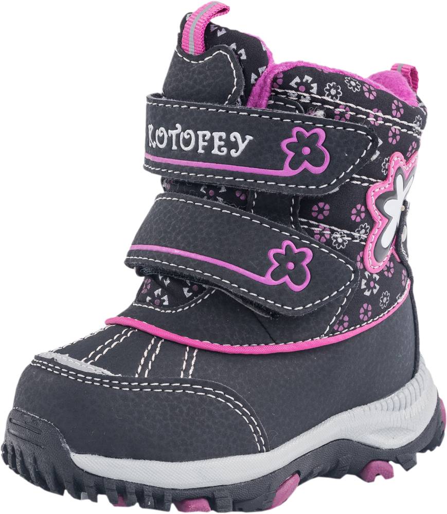Ang naaalis na insole ay gawa sa lana, na nagbibigay sa bata ng init sa mga binti sa buong paglalakad. Ang thermoplastic rubber outsole ay may texture na ibabaw na pumipigil sa pagbagsak sa madulas na ibabaw. Pag-aayos ng mga binti - dahil sa malakas na Velcro sa dami ng dalawang piraso.