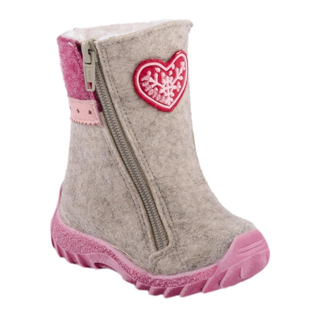 Para sa kanilang paggawa, ang lana ng tupa ay ginagamit, na hindi lamang napakainit sa pagsusuot, ngunit isang hypoallergenic na materyal din. Bilang karagdagan, ang nadama ay sumisipsip ng kahalumigmigan mula sa mga aktibong paggalaw ng bata at naglalabas ng hangin sa loob ng mga bota. Ang mga modernong modelo ay may komportableng solong, na, salamat sa pagtapak, pinipigilan ang pagdulas.