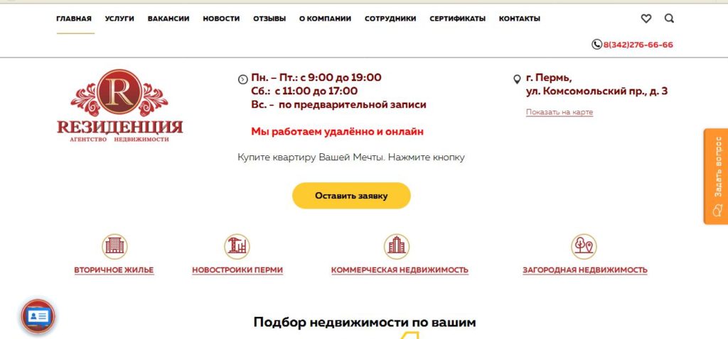 Ang kumpanya ay miyembro ng Association "RGR (Regional Guild of Realtors) Perm Territory". Mayroong 4 na sangay sa loob ng lungsod. Ay nakikibahagi sa:
