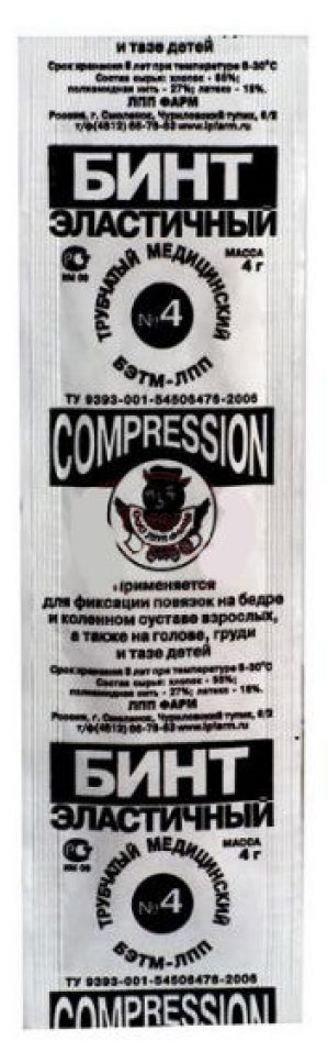 Ang bendahe ay may mataas na antas ng pagpapalawak, may mga sukat na 10 cm ang lapad at 3 m ang haba. Ito ay 96% cotton na may 4% elastane para sa stretch.