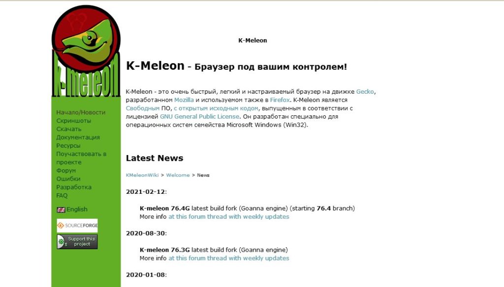 May mga bersyon para sa macOS, GNU/Linux, mobile Android, iOS. Angkop para sa isang PC na may maliit na halaga ng RAM: 10 bukas na mga pahina ay gumagamit ng 500 MB.