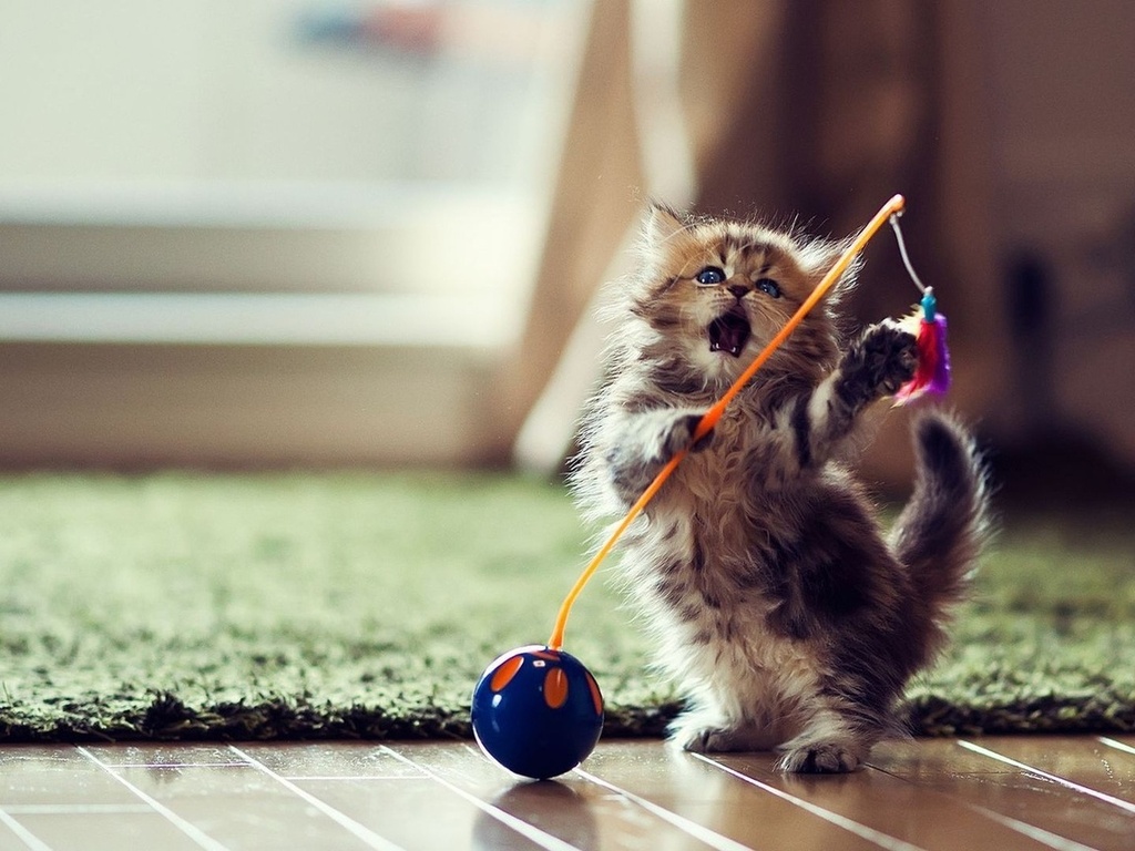 Para sa mga batang pusa na umabot na sa edad kung saan maaari nilang aliwin ang kanilang sarili, ang mga simpleng bola, laruang daga, o ngumunguya ng mga laruan ay mahusay.