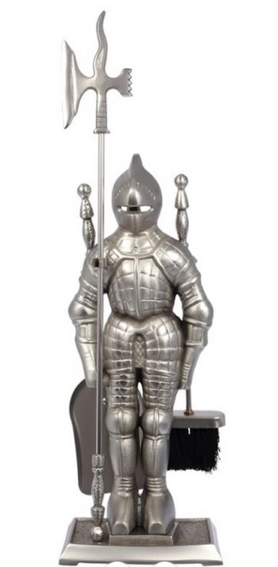 Napakaganda at orihinal na set ng disenyo. Ang servitor ay ginawa sa anyo ng isang pigurin ng isang kabalyero, na ang halberd ay poker din. Sa gayong poker ay maginhawa upang pukawin ang mga uling, at may talim ng halberd upang hatiin ang kahit na mahahabang nagbabagang mga log. Ang lapad ng working shovel scoop ay sapat na, ito ay nakakakolekta ng malaking halaga ng abo. Bilang karagdagan, mayroon itong hindi karaniwang hugis - isang makitid na ilalim, isang pinalawak na tuktok, dahil kung saan mas mahirap para sa nakolektang abo na gumulong sa pala. Ang buong istraktura ay gawa sa mataas na lakas na carbon steel at nickel plated para sa pinahabang buhay. Ang inirekumendang gastos para sa mga retail chain ay 8200 rubles.