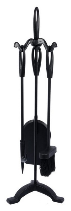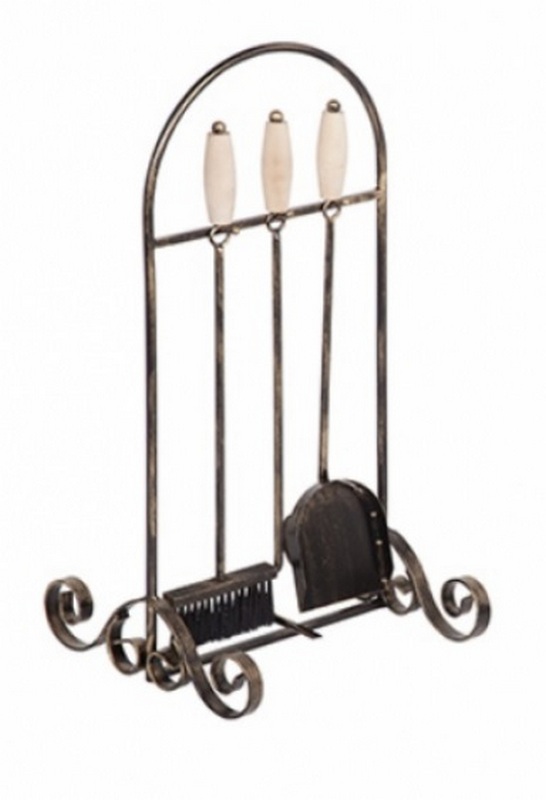 Ang nasabing set ay gawa sa matibay na bakal gamit ang paraan ng forging. May kasamang tatlong pinakakailangan na device para sa pag-aalaga sa insert ng fireplace (brush, pala, poker). Ang serviter ay inilalagay nang patayo, ang mga bagay ay nakabitin sa mga espesyal na kawit. Ang mga hawakan ay nararapat na espesyal na pansin, na ginawa batay sa mga keramika na lumalaban sa init at nilagyan ng isang anti-slip coating. Sa mga binti ng serviter posible na mag-install ng mga rubber pad (ibinigay nang hiwalay) upang maiwasan ang pinsala sa sahig kapag gumagalaw. Ang kilusan mismo ay hindi nagtataas ng mga katanungan, dahil. ang buong istraktura ay medyo magaan at hindi hihigit sa 3 kilo. Ang inirekumendang gastos para sa mga retail chain ay 3400 rubles.