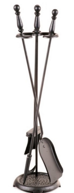Ang fireplace set na ito ay may kasamang tatlong item (scoop, whisk, poker) at ito ay ginagamit upang panatilihing malinis ang fireplace. Ang lahat ng mga accessories ay madaling magkasya sa halos anumang interior. Sa tulong ng isang panicle na may makapal at malakas na bristles, ito ay napaka-maginhawa upang kolektahin ang lahat ng mga abo sa isang scoop.Ang paglilinis ay gagawin nang may lubos na pangangalaga. Sa isang poker, maaari mong ganap na pukawin ang nagbabagang uling, na nagbibigay ng puwang para sa karagdagang oxygen na pumasok. Gayundin, hahatiin ng poker ang nagbabagang kahoy na panggatong na may napakataas na kalidad. Ang lahat ng mga accessories ay maginhawang inilagay sa isang espesyal na rack, at ang kanilang mga hawakan ay gawa sa matibay na materyal na lumalaban sa init. Ang kulay ng set ay itim, pinakintab na tanso. Ang inirekumendang gastos para sa mga retail chain ay 2600 rubles.
